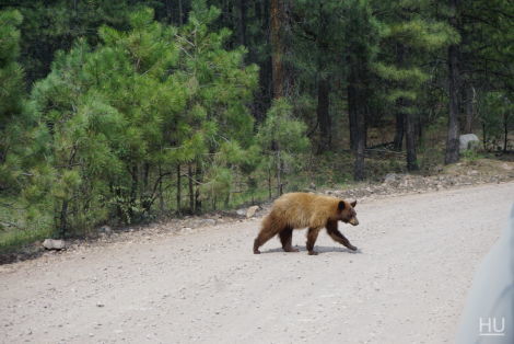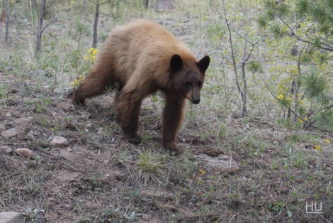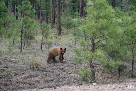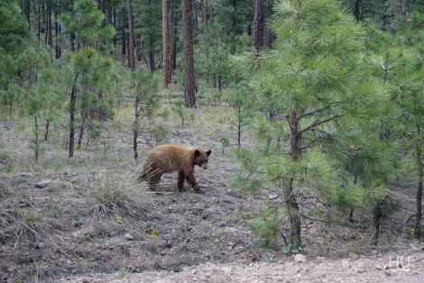 Little did we know that we were in for a couple more treats. As we rounded a corner a bear ran out from a culvert under the road! At first he hid behind a tree 10 sizes too small to hide him. After a minute he went back to life running around, digging and walking OVER any tree short enough to scratch his belly. He looked and acted like a young bear somewhat clueless what to do and what to be scared of. We thoroughly enjoyed our time with him. Just sitting in the truck chuckling at things he did and knowing we were lucky to stumble upon him. We hoped he’d smarten up and gain a fear of vehicles. We honked the horn and yelled without so much as a glance from the bear. It was time to keep moving. Goodbye furry brown Black Bear.
