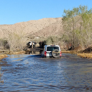 The first water crossing was lower than expected and all went well. The second one was deeper than expected due to a damn release. Even the taller trucks were bagged as a precaution.